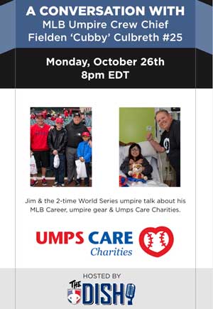 - Broadcasting on 10/26 "A Conversation with MLB Umpire Crew Chief Fielden Culbreth" to highlight his career & charity invovlement on The DISH